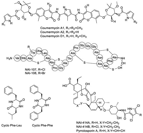 2.2. Coumermycins, Spirotetronates, Lantibiotics and Diketopiperazines