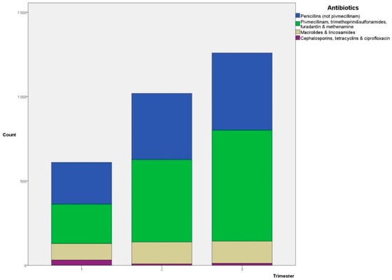 - de Jonge, L.; Bos, H.J.; van Langen, I.M.; de Jong-van den Berg, L.T.; Bakker, M.K. Antibiotics prescribed before, during and after pregnancy in the Netherlands: A drug utilization study. Pharmacoepidemiol. Drug Saf. 2014, 23, 60–68. [Google Scholar] [CrossRef] [PubMed]