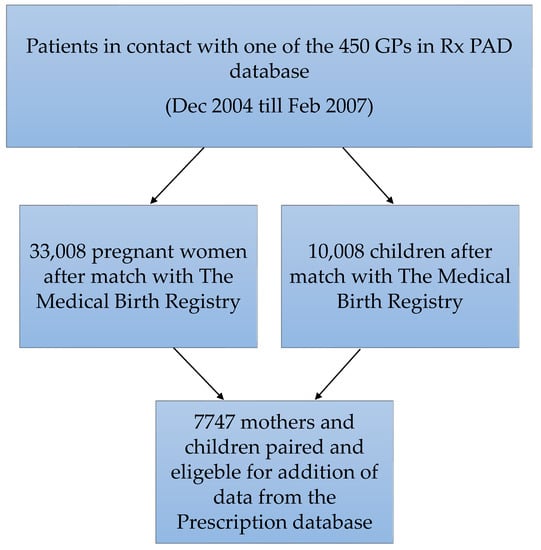 - Engeland, A.; Bramness, J.G.; Daltveit, A.K.; Rønning, M.; Skurtveit, S.; Furu, K. Prescription drug use among fathers and mothers before and during pregnancy. A population-based cohort study of 106,000 pregnancies in Norway 2004–2006. Br. J. Clin. Pharmacol. 2008, 65, 653–660. [Google Scholar] [CrossRef] [PubMed]
