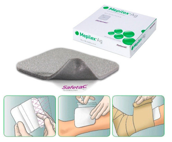 Mepilex® Ag with instructions for application. Images used with permission of Mölnlycke Health care, Sweden.