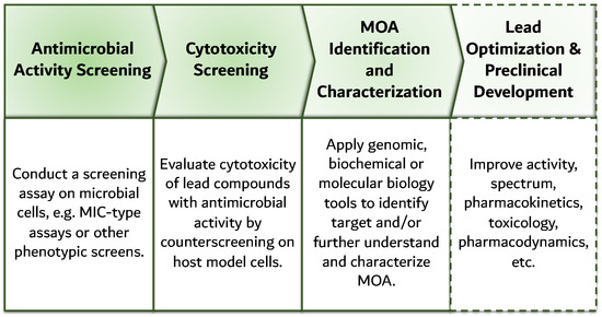 - Cox, G.; Sieron, A.; King, A.M.; De Pascale, G.; Pawlowski, A.C.; Koteva, K.; Wright, G.D. A common platform for antibiotic dereplication and adjuvant discovery. Cell Chem. Biol. 2017, 24, 98–109. [Google Scholar] [CrossRef]