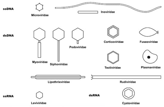 Schematic representation of major groups of bacteriophages. Reproduced with permission from reference [41].