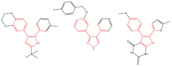 Inhibitors of the LolCDE complex show structural similarities. Nayar’s compound 2 (left), McLeod’s compound 2 (center), and Nickerson’s G0507 (right) all inhibit the LolCDE complex. Structural similarity between the three compounds is highlighted in red.