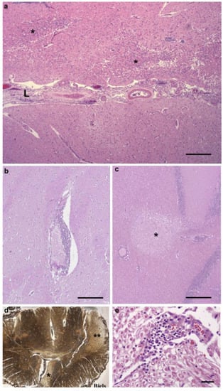 - Meurers, B.; Kohlhepp, W.; Gold, R.; Rohrbach, E.; Mertens, H.G. Histopathological findings in the central and peripheral nervous systems in neuroborreliosis. A report of three cases. J. Neurol. 1990, 237, 113–116. [Google Scholar] [CrossRef] [PubMed]