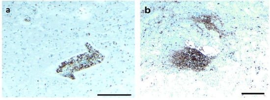 As negative controls, human brain, heart, kidney, and liver paraffin tissue sections from a patient of the same age and gender with no neurological signs or symptoms and no neuropathological changes were stained following the same procedure as above. Additional negative controls included commercially available human brain, kidney, heart, and liver tissue sections (20 each, US Biomax, Rockville, MD, USA) were also included. Non-specific isotype IgG controls (IgG1 Isotype Control, Invitrogen, Carlsbad, CA, USA MA1-10406) were used instead of the primary antibodies as IHC negative controls.