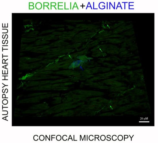 The following are available online at https://www.mdpi.com/2079-6382/8/4/183/s1, Figure S1: Representative images of IHC staining of brain autopsy tissues with Borrelia- and alginate-specific antibodies., Figure S2: Representative images of IHC staining of heart tissues with Borrelia- and alginate-specific antibodies, Figure S3: Representative images of IHC staining of kidney tissues with Borrelia- and alginate-specific antibodies, Figure S4: Representative images of IHC staining of liver tissues with Borrelia- and alginate-specific antibodies, Figure S5: Representative image of IHC staining of brain tissue for B. burgdorferi (red staining with red arrows) at the site of cerebral vasculitis.