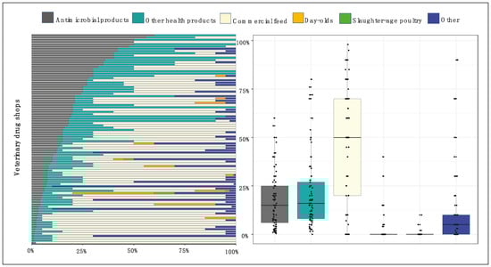 | Characteristics | All (n = 93) | <15% Antimicrobial Sales (n = 45) | ≥15% Antimicrobial Sales (n = 48) |