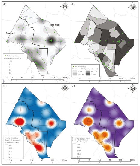 2.2. Mapping of Veterinary Drug Shops and Livestock Populations
