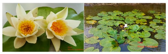 - Nazir, S.; Qureshi, M.A.; Chat, O.A. Anti-tumor, Anti-oxidant and Anti-microbial potential of Nymphaea alba and Nymphaea mexicana flowers—A comparative study. Adv. Biomed. Pharm. 2015, 2, 196–204. [Google Scholar] [CrossRef]