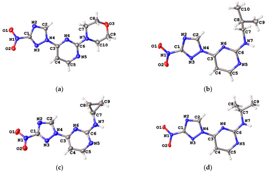 A glass screw-capped vial containing a magnetic stir bar was charged with 2-chloro-4-(3-nitro-1H-1,2,4-triazol-1-yl)pyrimidine (5) (0.44 mmol, 100 mg), amine (1.32 mmol) and acetonitrile (1 mL). The reaction mixture was stirred at room temerature. After completion of the reaction (TLC analysis), the solvent was removed in vacuo. The resulting solid was suspended in water (5 mL) and the suspension was cooled in the refrigerator. After 2 h, the thick precipitate was filtered off, air-dried and additionally cristallyzed from 96% ethanol to afford the product.