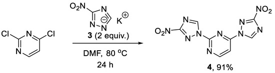 4.2.1. Preparation of 2,4-bis(3-nitro-1H-1,2,4-triazol-1-yl)pyrimidine (4)