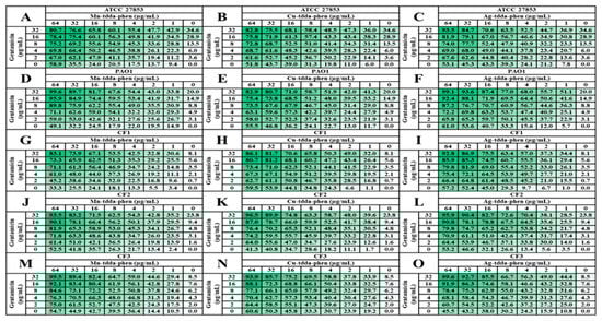 4.3.4. Checkerboard Assay for Mature Biofilms