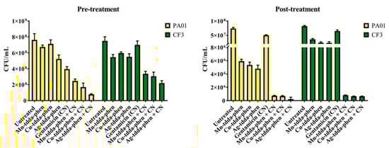 4.3.3. Effects of Test Compounds on the Mature Biofilm (Post-Treatment)