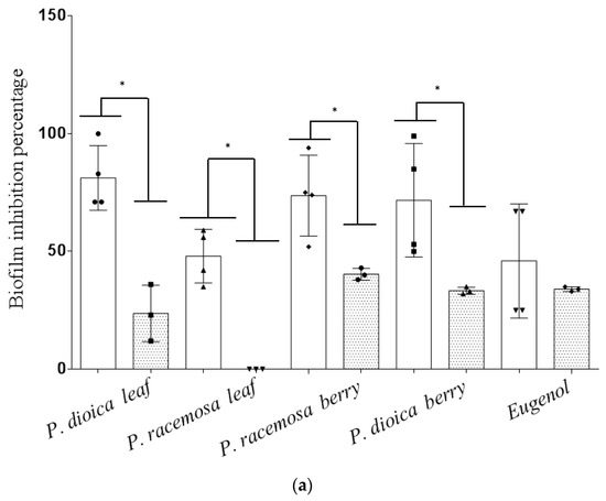 - Yadav, M.K.; Chae, S.-W.; Im, G.J.; Chung, J.-W.; Song, J.-J. Eugenol: A phyto-compound effective against methicillin-resistant and methicillin-sensitive Staphylococcus aureus clinical strain biofilms. PLoS ONE 2015, 10, e0119564. [Google Scholar] [CrossRef]