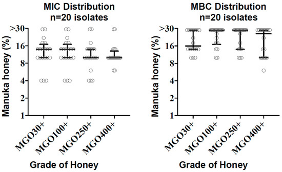 The following are available online at https://www.mdpi.com/2079-6382/9/10/684/s1, Table S1: Raw MIC and MBC values for each isolate and manuka honey tested.