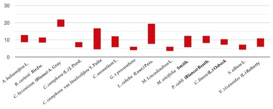 | C. camphora var. linaloolifera Y. Fuita | 10.65 ± 6.30 e,c,d |