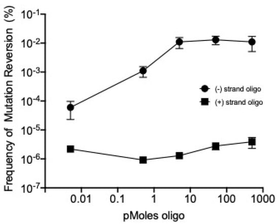 - Ellis, H.M.; Yu, D.; Ditizio, T.; Court, D.L. High efficiency mutagenesis, repair, and engineering of chromosomal DNA using single-stranded oligonucleotides. Proc. Natl. Acad. Sci. USA 2001, 98, 6742–6746. [Google Scholar] [CrossRef] [PubMed]