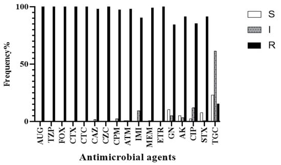 - Clinical and Laboratory Standards Institute. Performance Standards for Antimicrobial Susceptibility Testing. In CLSI Document M100-S26; Clinical and Laboratory Standards Institute: Wayne, PA, USA, 2016. [Google Scholar]