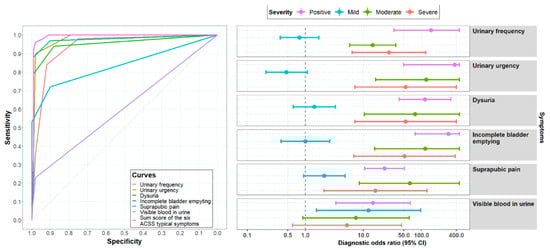 Comparing the results obtained by the ACSS for diagnostics of acute UC and EoT showed again that not only the presence but also the severity (scoring) of the symptoms are important, which may be typical but not specific for acute UC because some of the symptoms can also be caused by other urological diseases. It also can be shown that for clinical diagnostics, the best balance between sensitivity and specificity can be obtained using a sum score of 6 or higher of all the six ACSS typical symptoms as has been shown earlier as well [8,9,15].