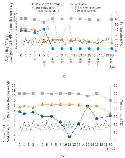 Yoshizawa, N.; Usui, M.; Fukuda, A.; Asai, T.; Higuchi, H.; Okamoto, E.; Seki, K.; Takada, H.; Tamura, Y. Manure Compost Is a Potential Source of Tetracycline-Resistant Escherichia coli and Tetracycline Resistance Genes in Japanese Farms. Antibiotics 2020, 9, 76. https://doi.org/10.3390/antibiotics9020076