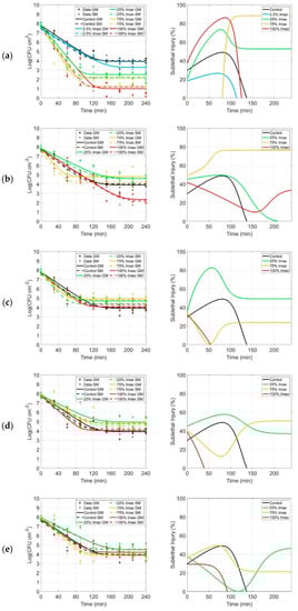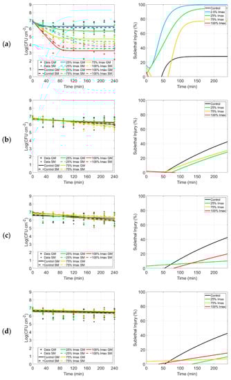 - Geeraerd, A.H.; Herremans, C.H.; Van Impe, J.F. Structural model requirements to describe microbial inactivation. Int. J. Food Microbiol. 2000, 59, 185–209. [Google Scholar] [CrossRef]