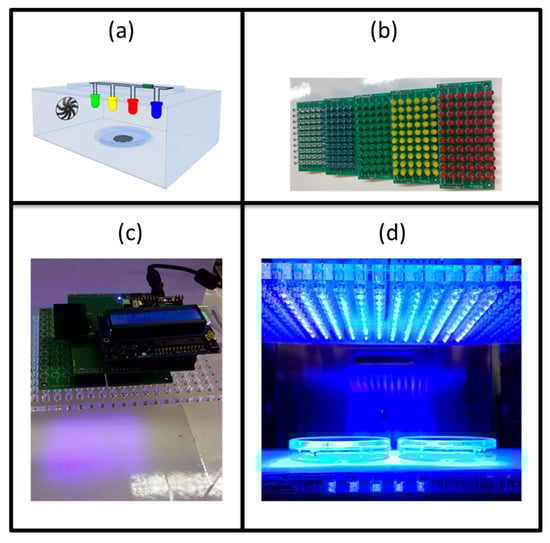 - Ghate, V.S.; Ng, K.S.; Zhou, W.; Yang, H.; Khoo, G.H.; Yoon, W.-B.; Yuk, H.-G. Antibacterial effect of light emitting diodes of visible wavelengths on selected foodborne pathogens at different illumination temperatures. Int. J. Foor Microbiol. 2013, 166, 399–406. [Google Scholar] [CrossRef]
