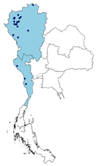 - Pooma, R.; Suddee, S. Tem Smitinand’s Thai Plant Names, revised; The Office of the Forest Herbarium: Bangkok, Thailand, 2014. [Google Scholar]