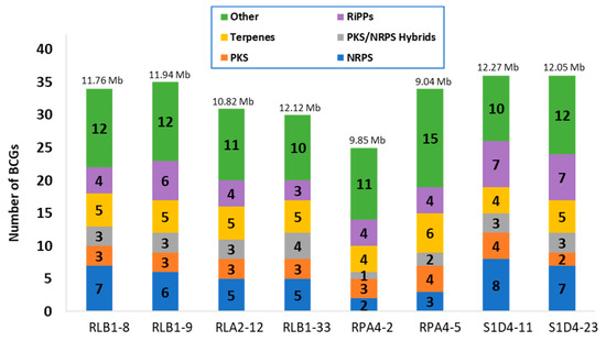 - Komaki, H.; Sakurai, K.; Hosoyama, A.; Kimura, A.; Igarashi, Y.; Tamura, T. Diversity of nonribosomal peptide synthetase and polyketide synthase gene clusters among taxonomically close Streptomyces strains. Sci. Rep. 2018, 8, 6888. [Google Scholar] [CrossRef] [PubMed]