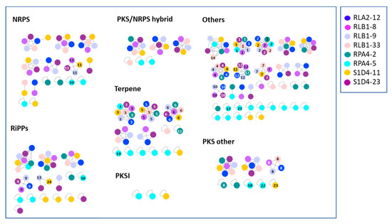 - Vicente, C.M.; Thibessard, A.; Lorenzi, J.-N.; Benhadj, M.; Hôtel, L.; Gacemi-Kirane, D.; Lespinet, O.; Leblond, P.; Aigle, B. Comparative genomics among closely related Streptomyces strains revealed specialized metabolite biosynthetic gene cluster diversity. Antibiotics 2018, 7, 86. [Google Scholar] [CrossRef]