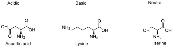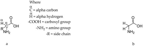 - Kevin, A.; Indira, R.; Taralyn, T. Structure & Function—Amino Acids—Biology LibreTexts. Available online: https://bio.libretexts.org/Bookshelves/Biochemistry/Book:_Biochemistry_Free_For_All_(Ahern,_Rajagopal,_and_Tan)/2:_Structure_and_Function/2.2:_Structure_and_Function_-_Amino_Acids (accessed on 12 November 2019).