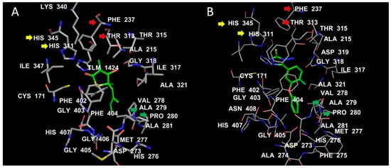 2.4. The Binding Interactions of TLM and the Most Promising Test Compound 1 (4-Amino-5-(4-Fluoro-3-Phenoxyphenyl)-4H-1,2,4-Triazole-3-Thiol)