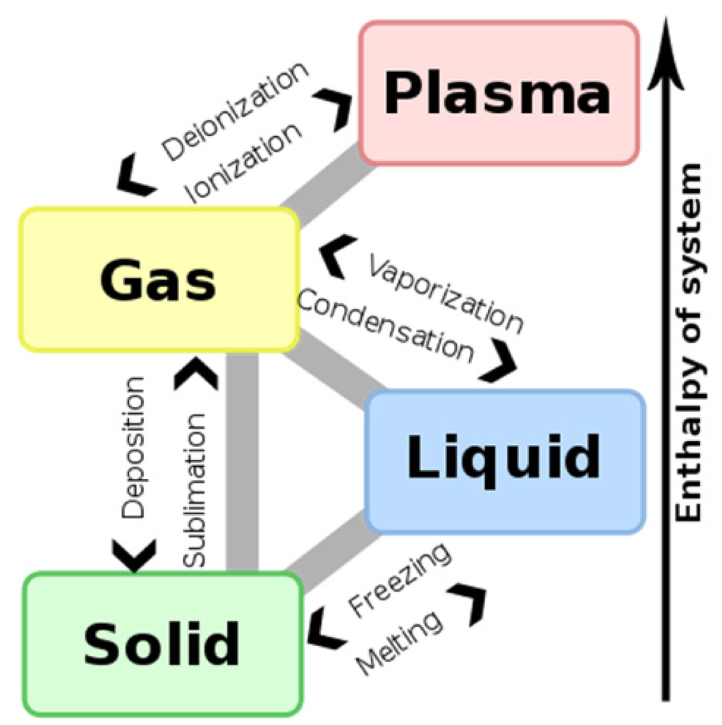 Phase transformation pathways and how process inputs affect feedstock treatment are also not well understood, though visible emission upon feedstock injection clearly indicates that the vaporized feedstock can be excited in the plasma prior to deposition. As Figure 6 illustrates, there are multiple potential pathways for phase transition of feedstock materials in a VLPPS process. These processes may be further complicated with chemical precursor feedstocks that react or pyrolize within the plasma [5,8,27].