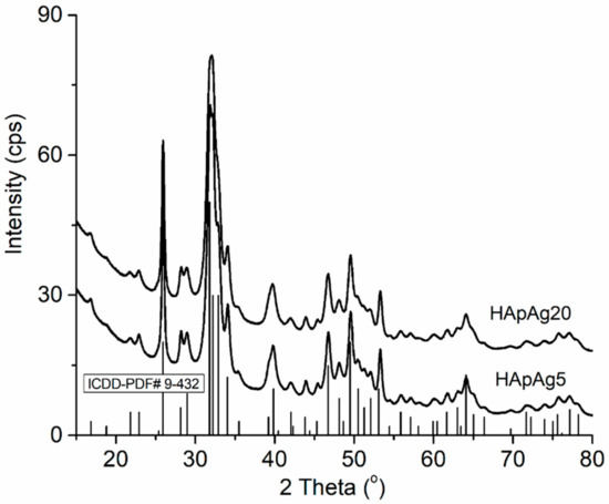 - Ciobanu, C.S.; Massuyeau, F.; Constantin, L.V.; Predoi, D. Structural and physical properties of antibacterial Ag-doped nano-hydroxyapatite synthesized at 100 °C. Nanoscale Res. Lett. 2011, 6, 613. [Google Scholar] [CrossRef] [PubMed]