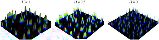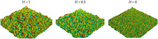 Simulated surfaces (1024 × 1024) following Weierstrass distribution with three different Hurst exponents (1, ½, 0) from left to right.