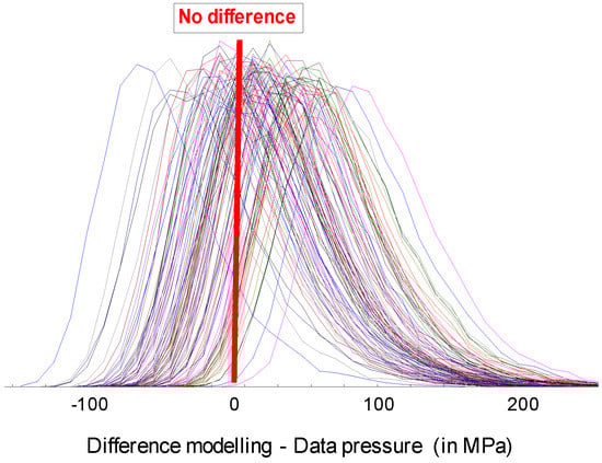 If the lambda distribution correctly fits the data, then the difference between the experimental data will be statistically equal to zero. To appreciate this hypothesis, the histograms of these differences are plotted for 100 surfaces (Figure 8). As is often the practice in statistics, the threshold of 95% is chosen to test the null value of the difference. Over all the one hundred surfaces, the null values is never rejected meaning that the lambda distribution describe correctly the extreme surface pressure.
