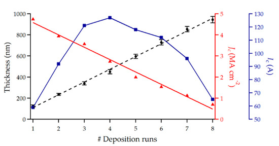 - Hengstberger, F.; Eisterer, M.; Weber, H. Thickness dependence of the critical current density in superconducting films: A geometrical approach. Appl. Phys. Lett. 2010, 96, 022508. [Google Scholar] [CrossRef]