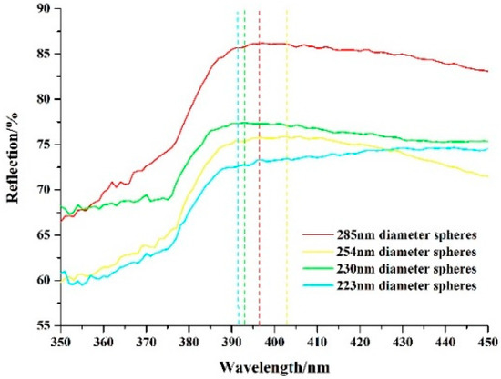 UV-Vis spectra of the coatings prepared using spheres of different diameters.