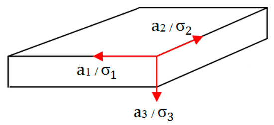 Based on the propagation characteristics of LCR wave in the medium, the definition of surface coordinates of the specimen is shown in Figure 2. LCR wave propagates on the shallow surface of the medium. On the shallow surface of the medium the restraint along its thickness direction (a3 direction) is small, and it is a free surface. Therefore, on the surface of elastic medium in a3 direction is 0. The stresses along a1 and a2 directions are respectively . Therefore, the surface stress state of specimen can be simplified to plane stress state.