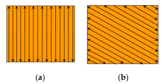 Schematic of stripe scanning strategy. (a) Scanning paths of layer N; (b) Scanning paths of layer N + 1.