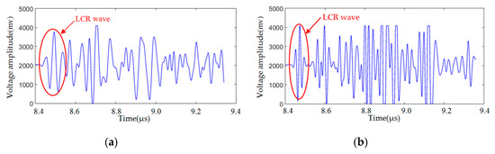 The received time domain signal. (a) a1 direction; (b) a2 direction.