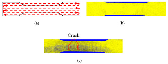 It can be seen from Figure 20 that the imaging results of specimen (stress state is 20 MPa) are basically uniform in color distribution, and that “stripe” areas with uneven color appear in the imaging results of the specimen (stress state is 400 MPa). According to the principle of ultrasonic microscopic imaging, the large difference of color brightness in imaging results indicates a large defect size in the tested specimen, and vice versa. The imaging results show that there were several small cracks that had emerged in the specimen (stress state is 400 MPa), however, there were few cracks in the specimen (stress state is 20 MPa), which is basically consistent with the results of the aforementioned mentioned theory analysis.