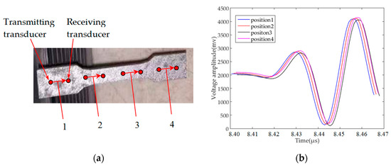 The received time domain signals corresponding to different detection positions. (a) Detection positions. (b) The received time domain signals.