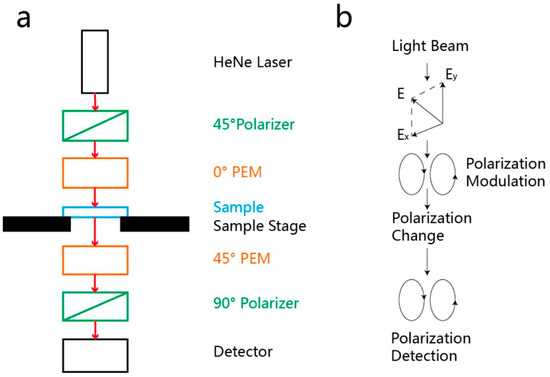 - Kemp, J.C. Piezo-optical birefringence modulators: New use for a long-known effect, A basic description of the PEM. J. Opt. Soc. Am. 1969, 59, 950. [Google Scholar] [CrossRef]