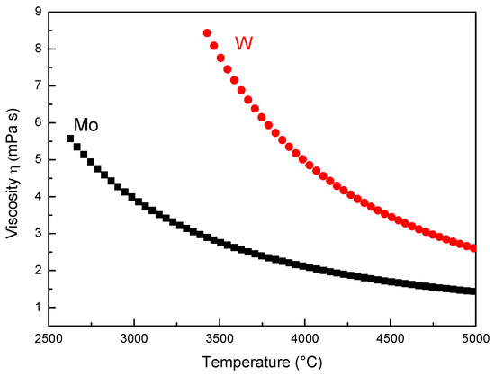 - Ishikawa, T.; Paradis, P.-F.; Okada, J.T.; Kumar, M.V.; Watanabe, Y. Viscosity of molten Mo, Ta, Os, Re, and W measured by electrostatic levitation. J. Chem. Thermodyn. 2013, 65, 1–6. [Google Scholar] [CrossRef]