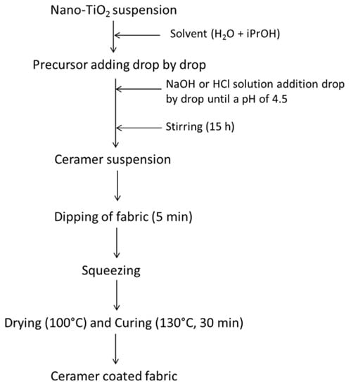 Flow chart of sol–gel process used for producing ceramer coated fabrics.