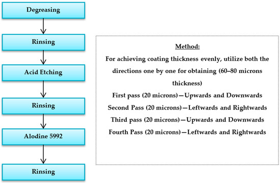 Powder coating with no emission of volatile organic compounds (VOCs) is a clean process; the process flow for preparation of powder coating is shown in Figure 2. The chemical composition of AlSi9Cu3 is listed in Table 1, which is confirmed by using Optical Emission Spectroscopy, Test Lab, Coimbatore, Tamil Nadu, India.