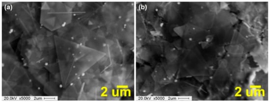 Figure 4a,b shows scanning electron microscope (SEM) images of Cu NPL solution before and after irradiation with energy of 2.1 J/cm2 for 1 ms, in which the amount of Cu coalescence is increased in comparison with Cu NPL.