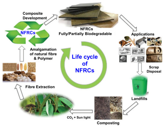The life cycle of biodegradable, natural fibre reinforced composites (Reprinted with permission from []; Copyright 2018 SAGE).