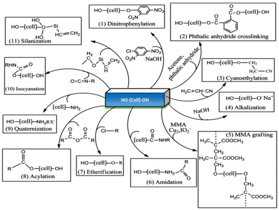 Chemical modifications of the plant-based fibres for biocomposites (Reprinted with permission from []; Copyright 2015 Elsevier).