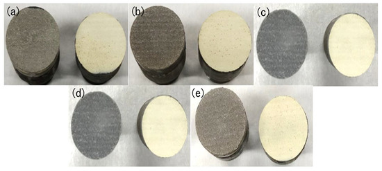 In all coating experiments, the cold-spraying equipment with a De-Laval 24TC nozzle (CGT KINETIKS 4000; Cold Gas Technology, Ampfing, Germany) was used. Nitrogen was used as the process gas with a 500 °C operating temperature, and a 3 MPa pressure. The spray distance was 20 mm with a process traverse speed of 10 mm/s. The coatings were deposited on a grit-blasted annealed stainless steel (SUS 304). The substrates were annealed with an electric furnace to preheat the grit-blasted substrate to four different temperatures, respectively (i.e., 300, 500, 700, and 1000 °C) before spraying. In all cases, the temperature of the annealed substrate during spraying was at room temperature.